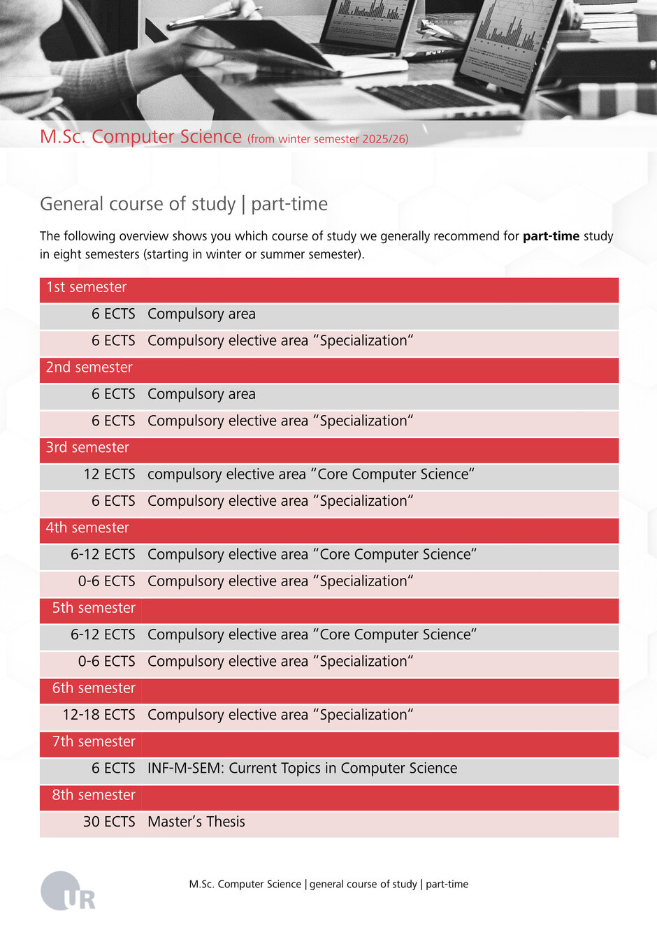 Im Teilzeitstudium absolvierst du 120 ECTS in acht Semestern, also ca. 15 – 20 ECTS pro Semester.