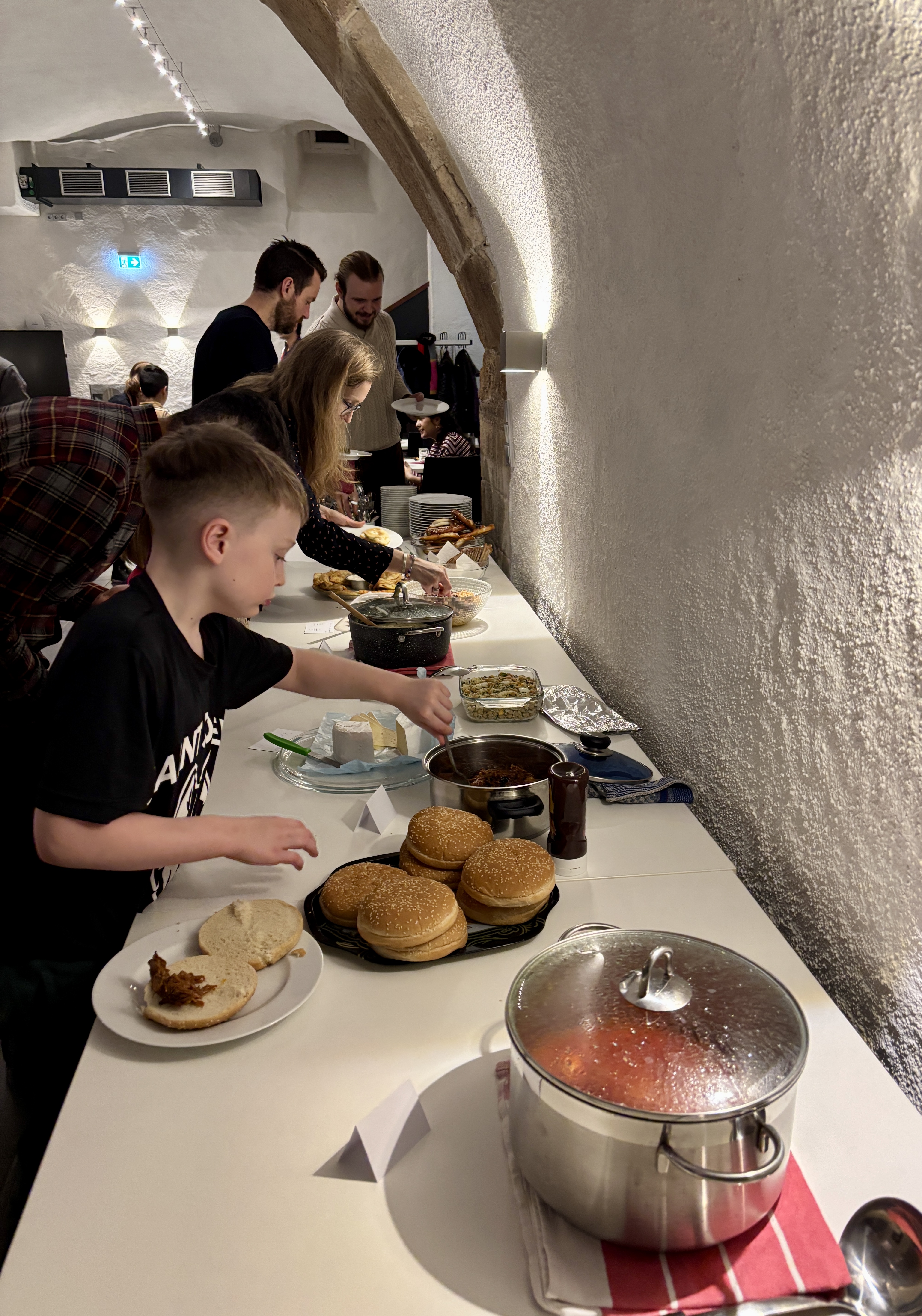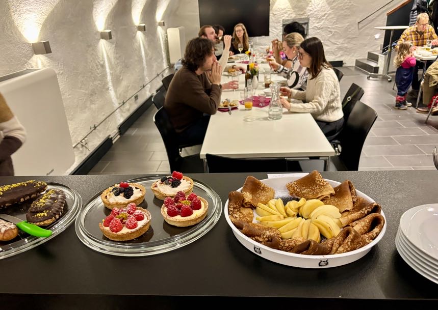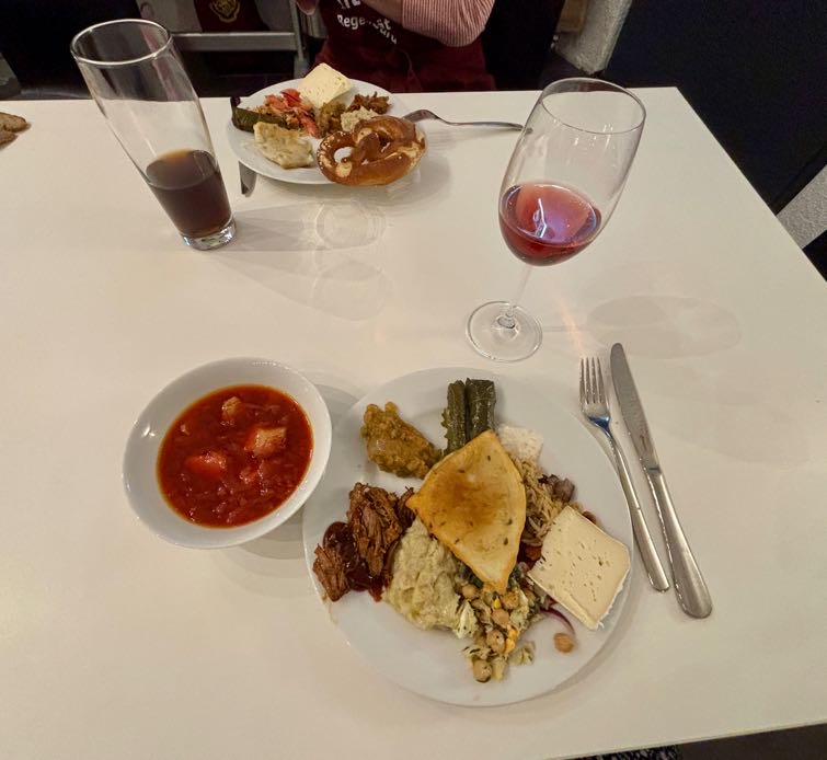 Ganz im Sinne der Potluck-Tradition hat jede und jeder ein herzhaftes oder süßes Gericht zum Teilen mitgebracht. Wir konnten unter anderem ukrainischen Borschtsch, usbekischen Plov, isländischen Plokkfiskur, indisches Pav Bhaji, französische Crêpes und amerikanisches Pulled Pork probieren, um nur einige zu nennen.