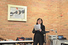 On Tuesday, 29 October visiting author Joy Castro read from a variety of her works to a captivated crowd. She was accompanied by Ursula Regener (UR), who read from a German translation of one of the works. |