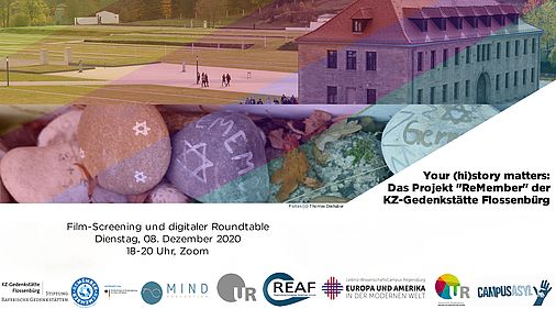 | Outreach Symposium: "Your (Hi)story Matters: Das Projekt 'ReMember' der KZ-Gedenkstätte Flossenbürg." How do we frame the future of memory? How can we permanently fight racism, antisemitism, and ideologies of injustice? And: in which society do we really want to live? On December 8th, 2020, we dealt with these and more questions in a digital film screening and roundtable for the project "ReMember."
