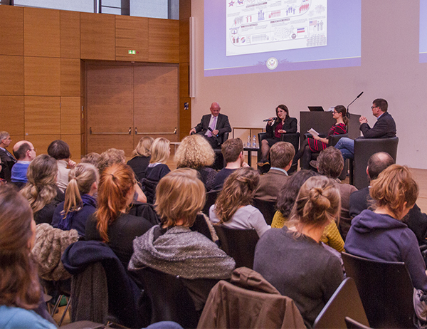 | On 26 January 2016, U.S. Consul General Jennifer Gavito (Munich) visited Regensburg for a panel discussion. Together with Regensburg panelists - Prof. Dr. Volker Depkat, Prof. Dr. Stephan Bierling and PD Dr. Ingrid Gessner - she engaged in the topic "Decision 2016: The US Presidential Elections 2016." She came to Regensburg upon invitation by Prof. Dr. Stephan Bierling, International Politics and Transatlantic Relations.