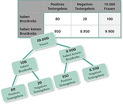 ![]() | Der Lehrstuhl Didaktik der Mathematik der Universität Regensburg untersucht, wie statistische Informationen dargeboten werden müssen, damit einerseits Schülerinnen und Schüler aber auch Medizinstudierende oder Juristinnen und Juristen Aufgaben mit bedingten Wahrscheinlichkeiten möglichst gut verstehen. Insbesondere wird hierbei auch der Nutzen von Visualisierungen (Vierfeldertafeln und Baumdiagramme) im Zusammenhang mit Bayesianischen Aufgaben erforscht. |