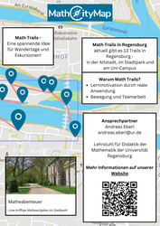 ![]() | Ab sofort steht unser Poster zu den Math Trails zur Verfügung. Das Poster kann gerne im Kollegium oder in der Schulfamilie verschickt werden oder im Schulgebäude aufgehängt werden. |