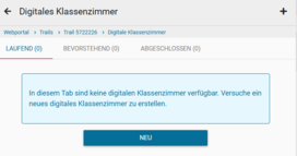Zum Erstellen eines digitalen Klassenzimmers muss die Anzeige des entsprechenden Trails geöffnet werden. Nach Anklicken des Symbols des digitalen Klassenzimmers erscheint eine neue Seite.