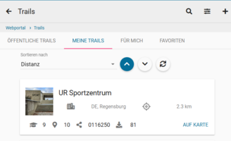 Fertigstellung: Der fertige Trail ist nun unter "Trails" → "Meine Trails" zu finden