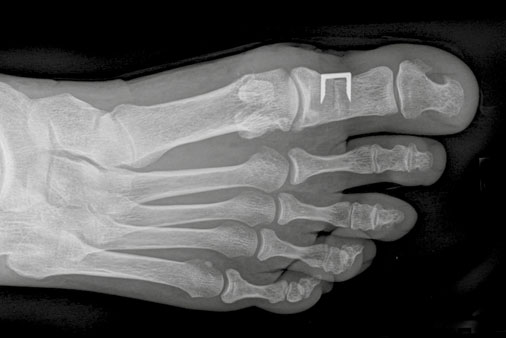 Hallux valgus nach Akin-Operation im Röntgenbild