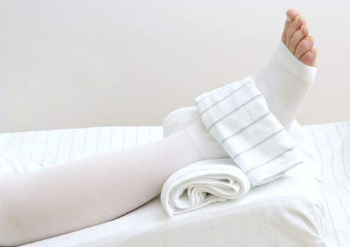 Aufgrund der gerade bei Fußoperationen stark ausgeprägten Schwellungsneigung ist die konsequente Hochlagerung des Fußes in den ersten Tagen nach der Operation die wichtigste Maßnahme, die von Ihnen durchgeführt werden muss. Dabei muss der Fuß „über Herzhöhe sein“. In den ersten Tagen nach der Operation darf der Fuß für maximal 5 – 10 Minuten / Stunde nicht hochgelagert sein.