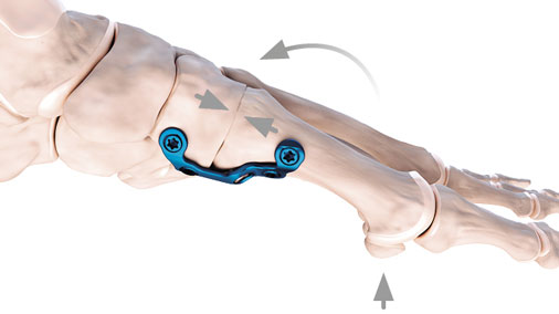 Operation nach Lapidus, fußsohlenseitige (plantare) Plattenfixierung.