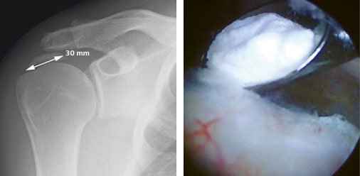 Akute Rupturen der Rotatorenmanschette werden in Abhängigkeit vom Patientenalter und der Vorerkrankungen meist zeitnah operativ versorgt. Chronische degenerative Rupturen werden häufig zunächst konservativ mit schmerzadaptierter analgetischer Therapie sowie Physiotherapie behandelt. Bei ausbleibender Besserung kommt auch hier die Operation zum Einsatz. Im Rahmen des operativen Eingriffs wird der Sehnendefekt dargestellt, die Sehne mobilisiert und anschließend mit mehreren Ankern an ihrem Ursprung am Knochen wieder refixiert. Die Rekonstruktion der Rotatorenmanschette geht häufig mit einer langen Nachbehandlung von mehreren Monaten einher und der Patient ist dementsprechend eingeschränkt.