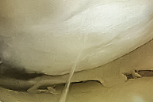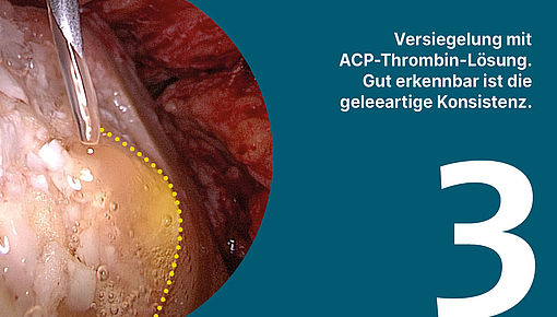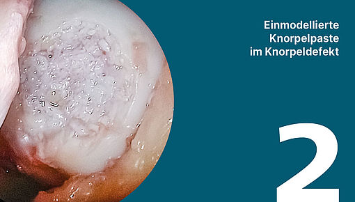 Nach ca. 3- 4 Wochen steht das Knorpelzellvlies zur Implantation zur Verfügung. Das Gelenk wird nun minimal-invasiv eröffnet, der Knorpeldefekt bis in das gesunde Umgebungsgewebe gesäubert und das passgenau zugeschnittene Vlies in den Defekt eingeklebt. Bei einer gelbasierten ACT wird das knorpelzellhaltige Gel in den Defekt eingespritzt. Anschließend wird das Gelenk wieder verschlossen.