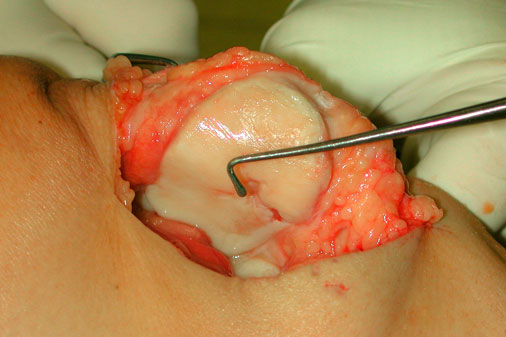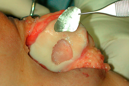 Bearbeiteter Knorpeldefekt mit passgenauer Schablone