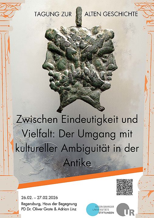 Zwischen 26. - 27. Februar 2026 veranstaltet der Lehrstuhl die Tagung "Zwischen Eindeutigkeit und Vielfalt: Der Umgang mit kultureller Ambiguität in der Antike. Mehr Informationen, insbesondere das Tagungsprogramm, finden Sie unter dem Reiter Tagung.