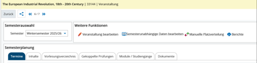Das Lehrangebot ist nach Studiengängen strukturiert.