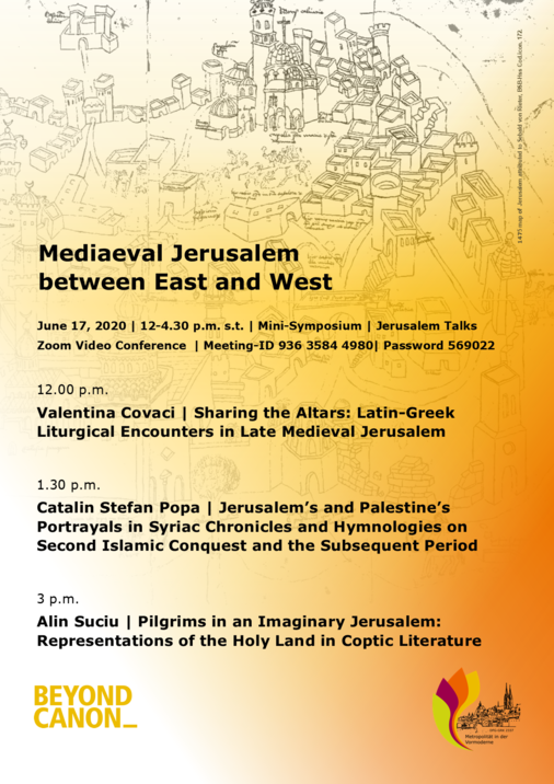 - 1.30 p.m. Catalin Stefan Popa | Jerusalem’s and Palestine’s Portrayals in Syriac Chronicles and Hymnologies on Second Islamic Conquest and the Subsequent Period