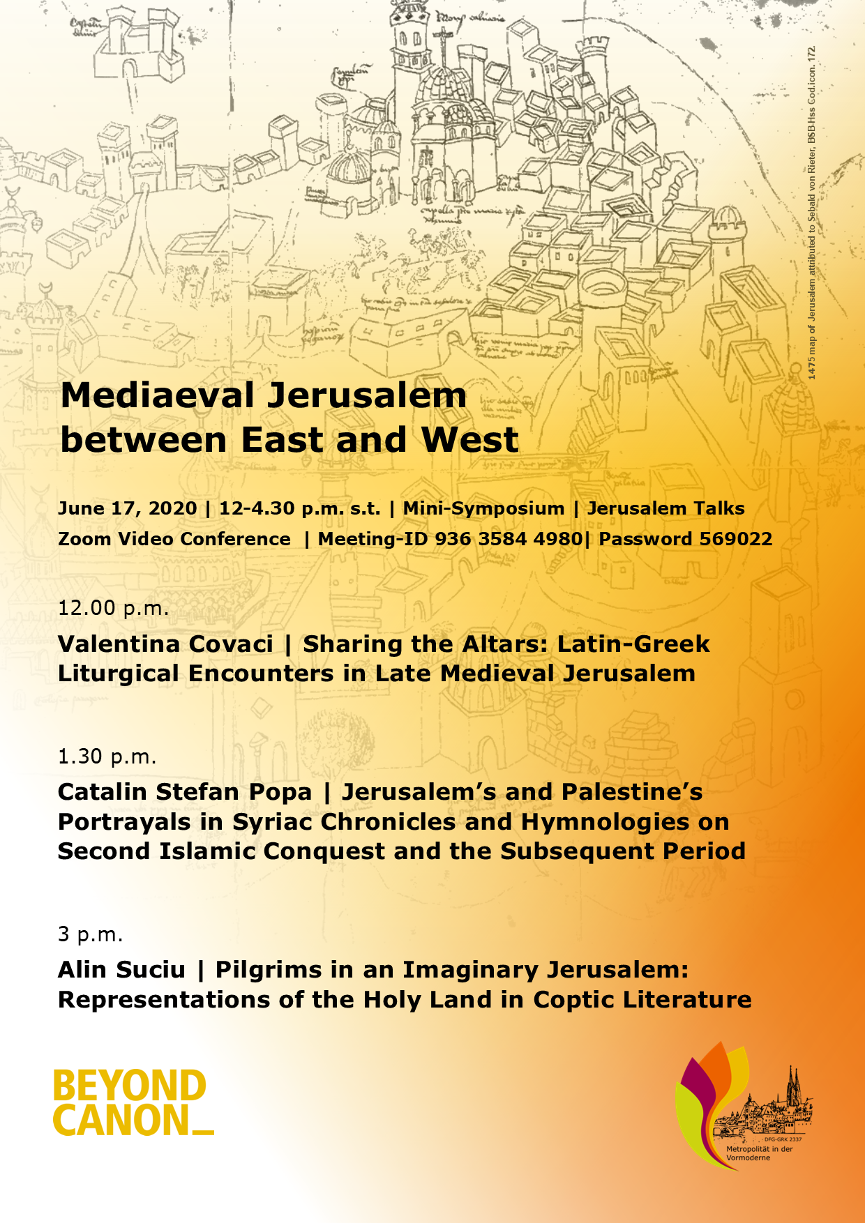 - 12.00 p.m. Valentina Covaci | Sharing the Altars: Latin-Greek Liturgical Encounters in Late Medieval Jerusalem