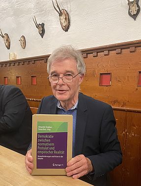 In einer feierlichen Zusammenkunft wurde am 23.10.2025 das akademische Leben des ehemaligen Lehrstuhlinhabers Prof. Dr. Martin Sebaldt gewürdigt. Dabei konnte zwar nur eine vorläufige Version der von Alexander Straßner und Simon Bein herausgegebenen Festschrift überreicht werden, aber der Dank aller Weggefährten, Freunde, Doktoranden und ehemaligen Kollegen war deshalb nicht weniger groß. Aus Passau war unter anderem Sebaldts Mentor und Doktorvater Prof. Dr. Heinrich Oberreuter angereist, auch viele andere Autorinnen und Autoren waren anwesend.