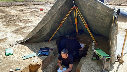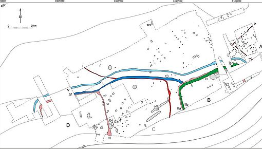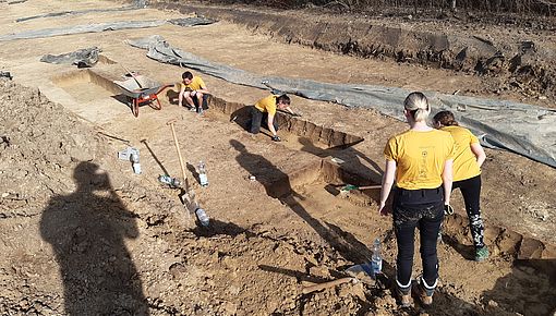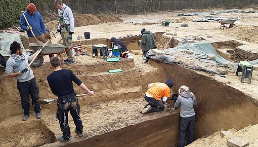 After four decades, an opportunity arose to resume excavations in areas not explored at the time and bring them to a conclusion. The most important result of the recent field work, which was completed in 2022, is the stratigraphic disentanglement of the numerous ditches. Initially, the loess terrace had been divided by a ditch running across the terrain, having apparently been dug before the Hallstatt complexes were constructed and which was possibly contemporaneous with the palisaded farmstead A. During the excavation it was revealed that the middle of the three rectangular farmsteads that had been assumed to exist on the site was not in fact present. In a later phase, the two sites were joined together by two connecting ditches. Finally, the ditch of enclosure B was recut.