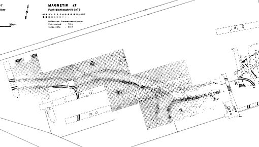 In addition, about 200 m further to the southwest, a similar double enclosure was discovered. About 5 km to the northeast, a group of unconnected rectangular farmsteads has recently been magnetically surveyed. These are characterized by a larger number of long pits indicating former house sites.