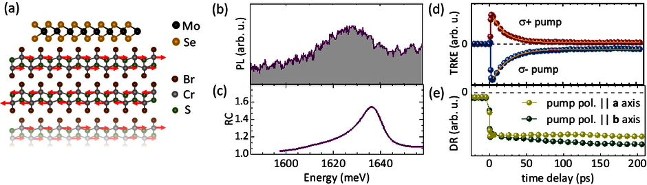Die Emissions- und Absorptionseigenschaften von Quasiteilchen werden mithilfe von PL (Abb. 1b) und RC (Abb. 1c) untersucht, während TRKE (Abb. 1d) und DR (Abb. 1e) Einblicke in deren Spin- und Populationsdynamik liefern.