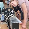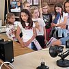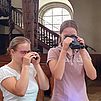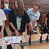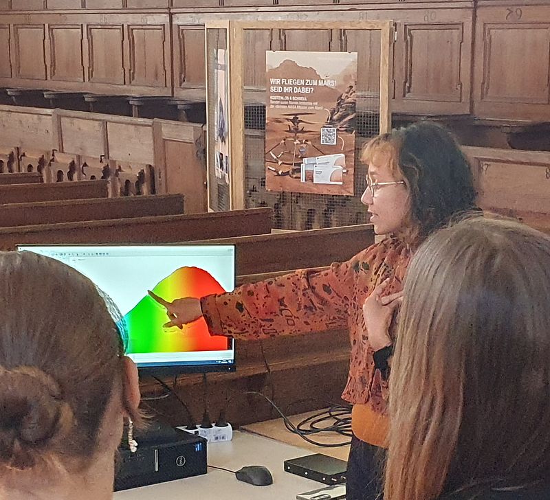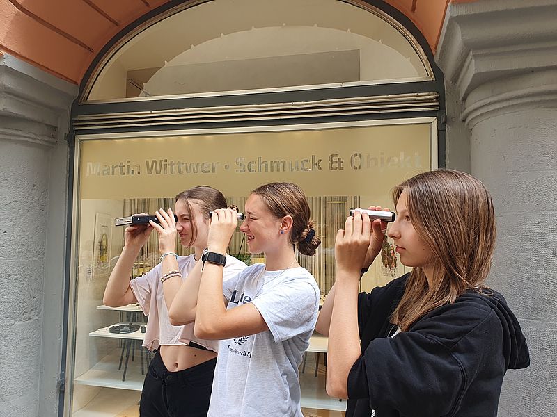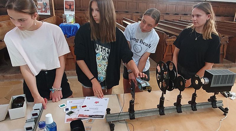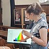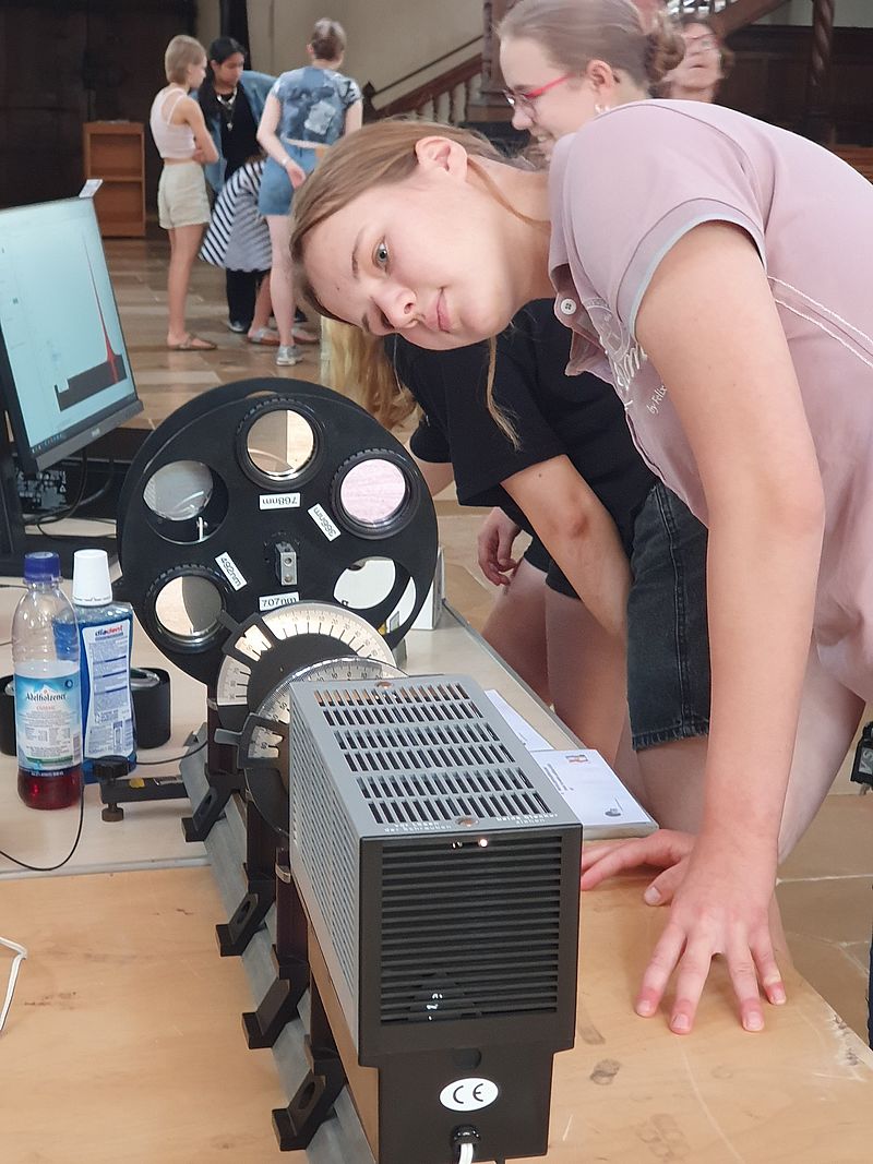 Nebenstehendes Bild zeigt die Haupt- und Nebenmaxima eines Gitterbeugungsbilds von farbigen LEDs. Der Beugungswinkel und somit der Abstand des ersten Maximums von der Mittellinie ist abhängig von der Wellenlänge (Farbe).