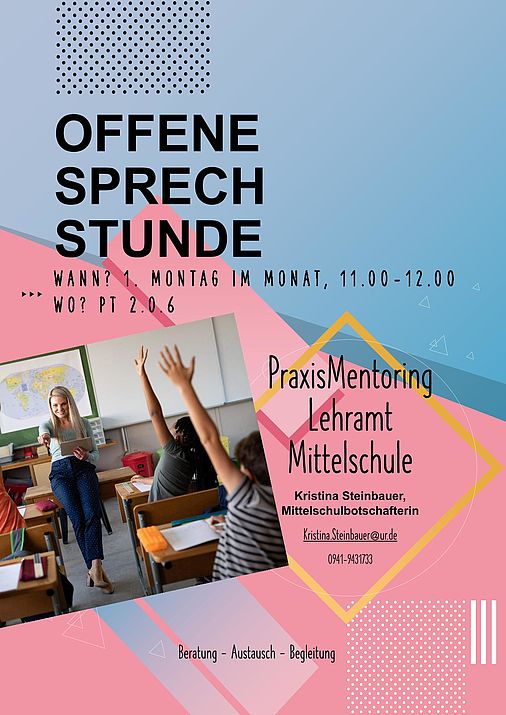 Kristina Steinbauer ist als abgeordnete Mittelschullehrkraft seit diesem Semester am Lehrstuhl für Schulpädagogik der UR als Mittelschulbotschafterin tätig.