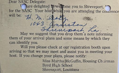 Vom 7. bis 10. November 1951 nahm ich teil als special delegate an der Seventeenth Annual Session of the Southern Association of Student Councils in Shreveport, Louisana. Diese mit interessantem Programm, Gesprächen und Erkenntnissen zur Geschichte, der mineralogischen und einer menschlichen.