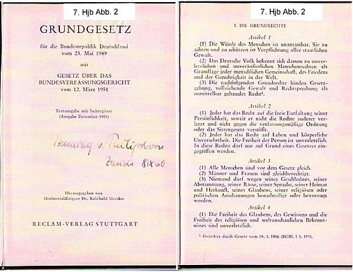 WS 1960/61 in Zürich hörte ich die Vorlesung Allgemeines Staatsrecht des Juristen Prof. Dr. Werner Kägi (*26.8.1909 -†14.10.2005) und erwarb das Grundgesetz für die Bundesrepublik Deutschland vom 23. Mai 1949 (Abb. 2)