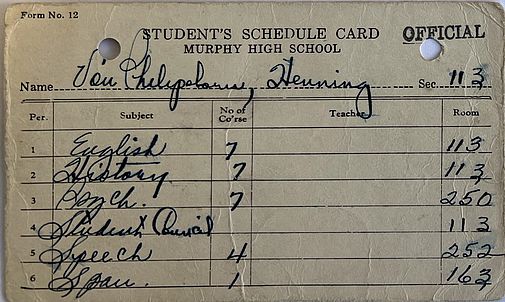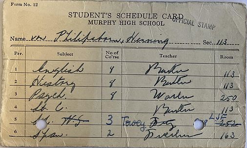 Vom Aufenthalt in Mobile habe ich sehr viele allgemeine und spezielle Druckschriften aller Art und Photos und Bücher mit persönlicher Widmung, handschriftliche Notizen, zum Teil in deutscher Stenographie. Es war ein reiches, vielfältiges Leben in der Senior Class of Murphy High School, einer rein weißen Schule.