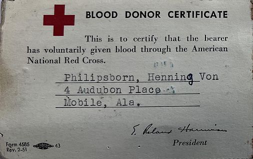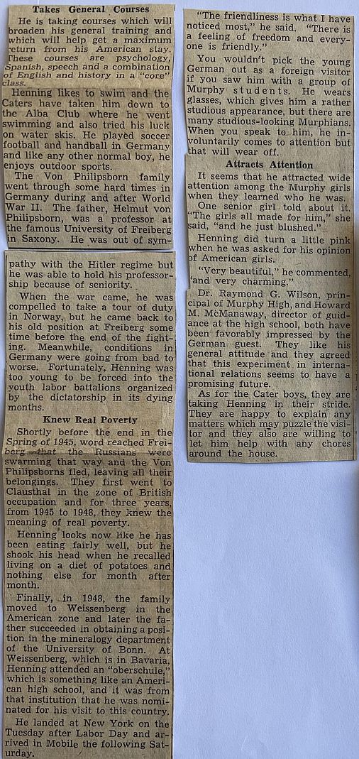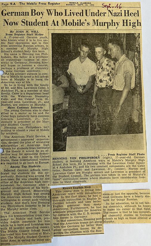 Im Program der Fairhope Christian Church, Fairhope, Ala heißt es nach dem Morning Worship am October 21, 1951 10:30 A.M.: “We welcome Herr Henning Von Philips-born to our services this evening. He will speak to the C.Y.F and also make a short talk at the Evening Worship services”.