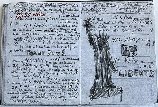 35. Woche mit Ankunft in New York mit Texten und 2 Zeichnungen