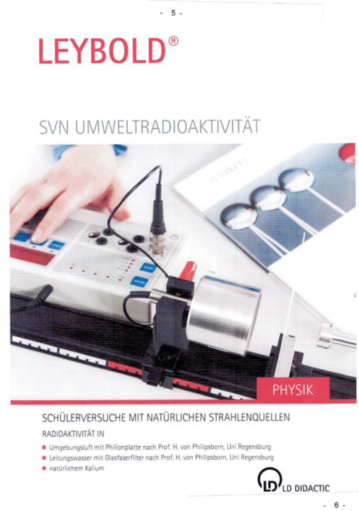 Der Kasten „Schülerversuche mit radioaktiven Strahlenquellen“ wurde mit diesen Knöpfen entwickelt. Nach jahrelanger Erprobung von 100 selbst zusammengesetzten Sets und deren Verkauf an Schulen zu Selbstkosten wurde das Set, mit einer Ergänzung, der Ablenkung im Magnetfeld, von Leybold Didactic übernommen. Für die Abbildungen der Vor- und Rückseite des ersten Werbeblattes von LD siehe p. 5 + 6. Der Kasten wird von Leybold-Didactic SVN Umweltradioaktivität seit 12 Jahren sehr erfolgreich verkauft.