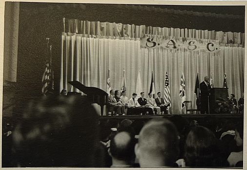 Am 25.10.1951 erhielt ich die Einladung zur S.A.S.C., siehe unten und am 18. Geburtstag am 11. März 1952 erhielt ich das Blood Donor Certificate, blood group 0, Rh factor pos. Wegen Minox Filmmangel gibt es nur wenige eigene Photos: S.A.S.C. Convention + Pat Young mit Blumenstrauß und Murphy High School Graduation Diploma mit der Confederate Flag.