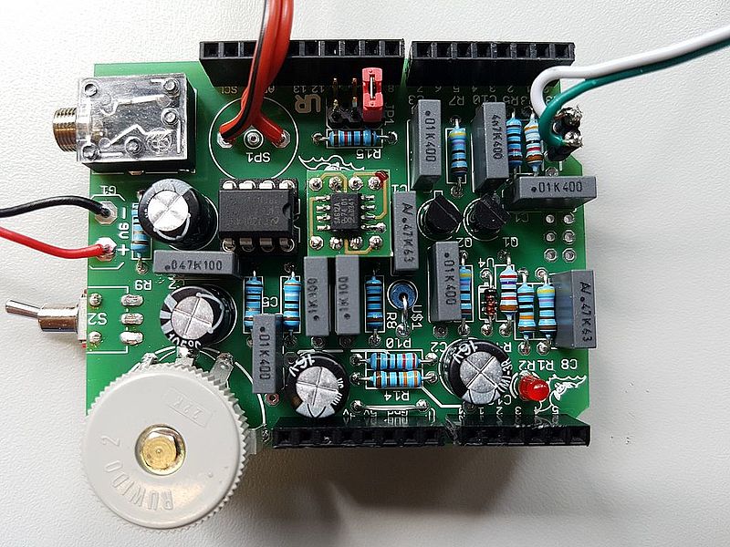 Die vorliegende Schaltung nutzt dieses Frequenzmisch-Verfahren. Als Basis dient dabei ein Arduino Uno mit einem selbst entwickelten Shield. Die komplette Anleitung kann hier downgeloaded werden.
