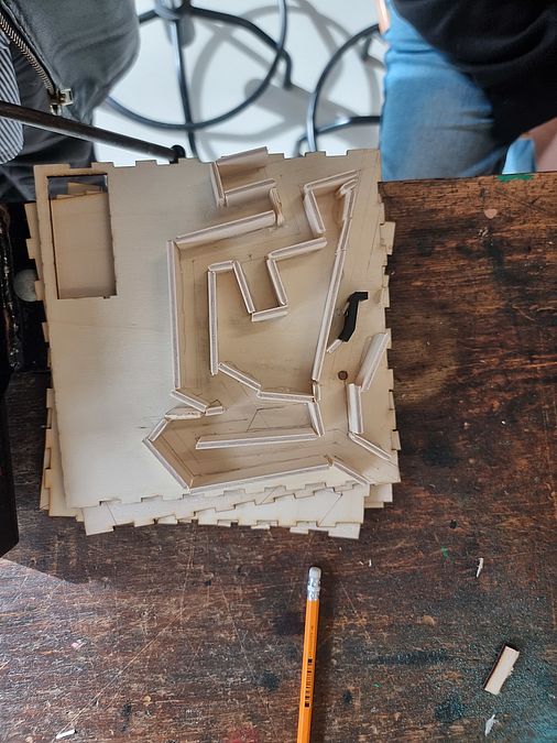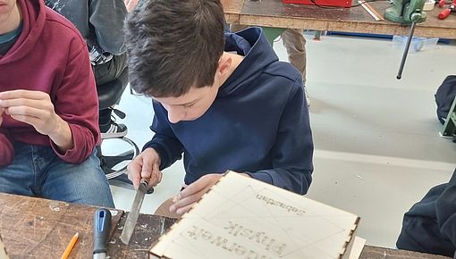 Diese selbstgebaute Box aus dem LaserCutter verfügt über einen besonderen Mechanismus: nur wenn mit einem Magneten ein bestimmtes Muster exakt abgefahren wird, öffnet sich die Klappe der Box. So bleiben alle Geheimnisse vor Unbefugtem Zugriff verborgen...