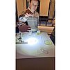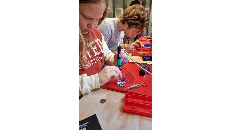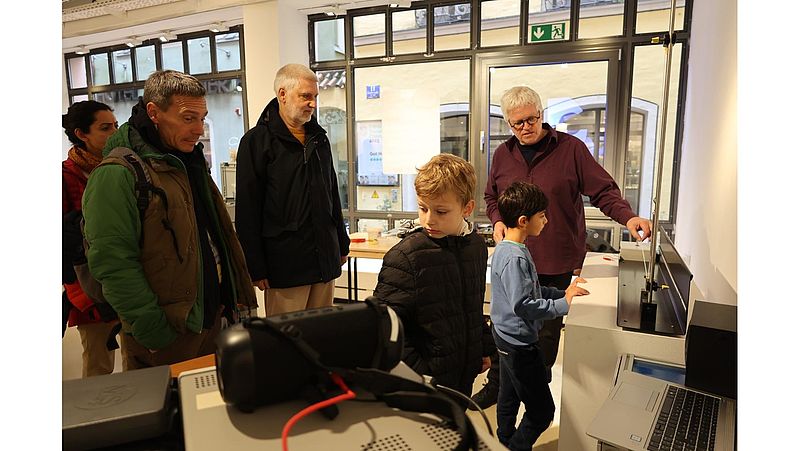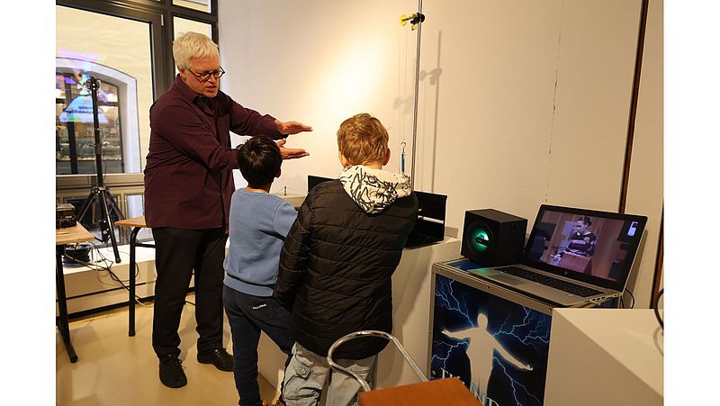"Entdecke spielerisch den Weltraum! Bei uns kannst du mit unserem selbst gebastelten Magnetgravimeter anschaulich erleben, warum sich Menschen im All schwerelos fühlen. Experimente mit der Infrarotkamera zeigen dir, wie wir unsere Erde aus dem Weltraum mit Satelliten untersuchen können und bei einem virtuellen Mondspaziergang kannst dich fühlen, als wärst du selbst im All."