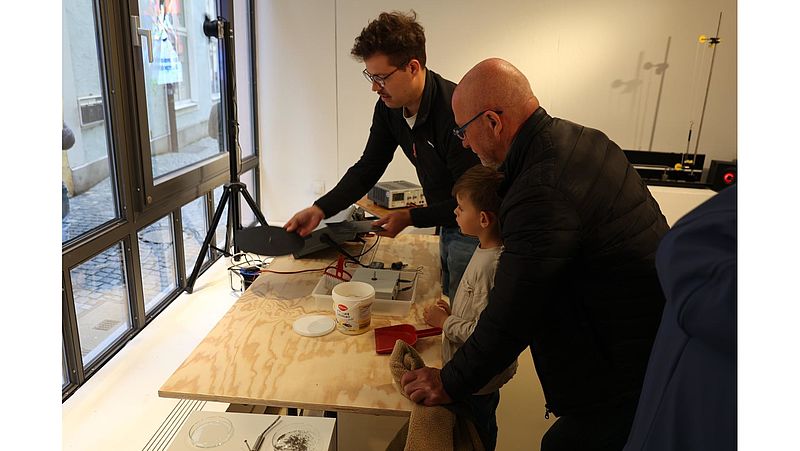 "Spiele mit nicht-Newton'schen Flüssigkeiten, lass Kunst entstehen mit den Chladnischen Platten oder erzeuge Stehende Wellen auf Seil und Feder!"