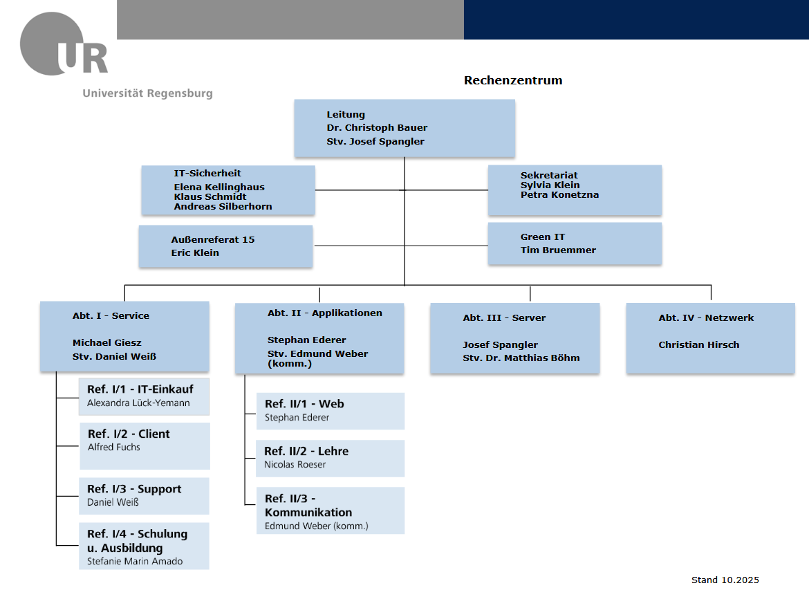 Als attraktiver IT-Dienstleister und Arbeitgeber fokussieren wir uns auf kundenorientierte, marktgerechte und sichere Dienste für die UR.