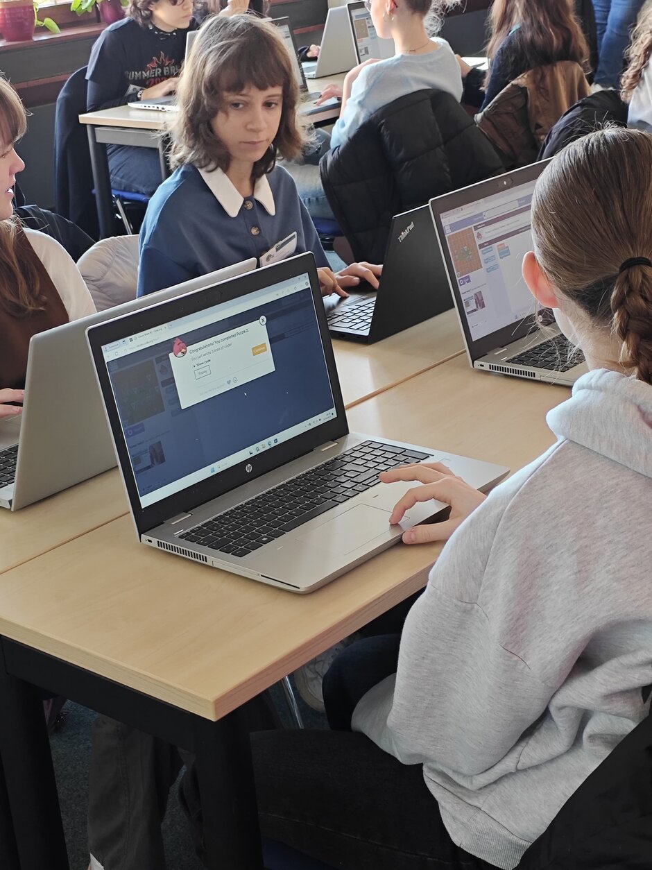 Unter Anleitung der Azubis lernten die motivierten Teilnehmerinnen verschiedene Levels des Online-Games "angry bird" kennen - und sammelten dabei auf spielerische Weise erste Erfahrungen im Programmieren.