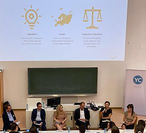 Im Rahmen der Young Competition Law Scholars Conference zum Generalthema „Think Big – Questioning the Role of Competition Law in the 21st Century“ nahm Tabea Bauermeister am 6. September an einer Podiumsdiskussion zur Frage „EU-Competitiveness in a Globalized World: Competition Law and OR vs Regulation?“ teil. Diskutiert wurden Marktversagen und Rechtssetzungsversagen, die Bedeutung des DMA für die Wettbewerbsfähigkeit der EU und sein Verhältnis zum klassischen Wettbewerbsrecht.