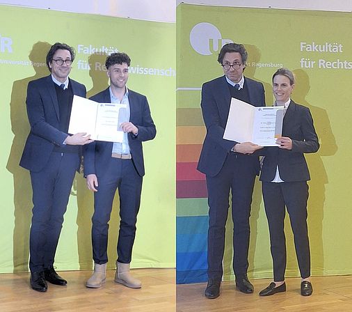 Im Wintersemester 2023/24 wurden Herr Professor Kingreen für seine Vorlesung „Sozial- und Gesundheitsrecht I“ und Herr Dr. Drechsler für seine REX-Vorlesung „Vertiefung im Verwaltungsrecht“ ausgezeichnet. Die Urkunde überreichte die Studiendekanin, Professor Mayer.