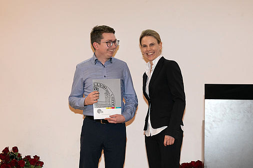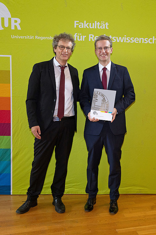 Nach Grußworten unseres Dekans, Prof. Dr. Graser, des Präsidenten der Universität Regensburg, Prof. Dr. Udo Hebel, sowie des Präsidenten des Landgerichts Regensburg, Alfred Huber, erfolgte traditionell die Auszeichnung für die "Beste Lehrveranstaltung im SS 2025". Die Urkunde erhielt zum einen der Wissenschaftliche Mitarbeiter Zachariasz Hussendörfer für seine Vorlesung „REX Öffentliches Recht – Vertiefung im Verwaltungsrecht“, zum anderen auf professoraler Seite wieder Prof. Dr. Bernd J. Hartmann, diesmal für seine Vorlesung "Öffentliches Wirtschaftsrecht".