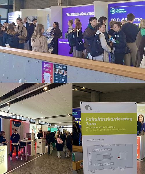 Heute fand der Fakultätskarrieretag statt – erneut ein großer Erfolg! Von 10:00 bis 15:00 Uhr hatten Studierende im Foyer des Sammelgebäudes die Gelegenheit, sich mit zahlreichen Unternehmen, Kanzleien und Organisationen auszutauschen und wertvolle Einblicke in Praktika, studentische Nebentätigkeiten sowie Referendariats- und Berufseinstiegsmöglichkeiten zu gewinnen.