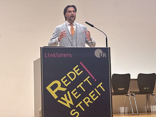 Beim Linklaters Redewettstreit der Universität Regensburg traten Jurastudierende aus ganz Bayern zu einem anspruchsvollen rhetorischen Wettbewerb an. Die erste Halbzeit bot pointierte Standpunktreden, die zweite einen präzisen Diskurs auf hohem Niveau.
