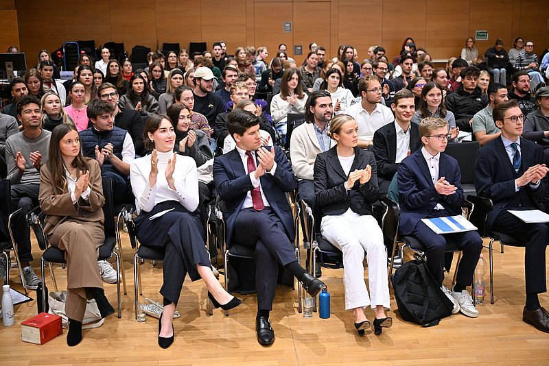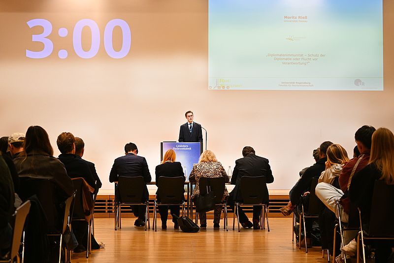 Darüber, wer den besten Vortrag hielt, hatte die Jury zu entscheiden, die dieses Mal aus Dr. Timo Engelhardt, Partner der Wirtschaftskanzlei Linklaters LLP, Dr. Bettina Mielke, Vorsitzende Richterin am Landgericht Regensburg, und Andreas Wenleder, Reporter im BR-Studio Niederbayern/Oberpfalz in Regensburg, bestand. Ausschlaggebend für die Bewertung waren neben der juristischen Argumentation auch Gestik, Mimik und Rhetorik.