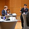 In die zweite Runde kamen die vier bestplatzierten aus Runde eins: Jan Morawitz-Bardenheuer von der LMU, Nicola Antretter und Anna Kunz, beide von der Universität Passau, und Laura-Katharina Heide Effner von der UR. In dieser zweiten Runde wurden die Studierende in zwei Teams eingeteilt, die sich jeweils für bzw. gegen das Thema „Sollte das Vererben großer Vermögen stärker als bisher besteuert werden?“ positionieren mussten. Nach Abschluss der 20-minütigen Podiumsdiskussion und einer kurzen Beratung der Jury wurden alle Punkte zusammengezählt und die Sieger des Abends gekürt.