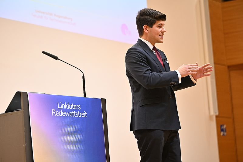 Der Linklaters Redewettstreit fand am 13. November 2025 im Vielberth-Gebäude der Universität Regensburg statt. Das Ausbildungszentrum REGINA gratuliert den Gewinnern und bedankt sich bei allen Teilnehmenden und Zuschauern sowie bei der Kanzlei Linklaters als langjährigem Partner und Sponsor der Veranstaltung.