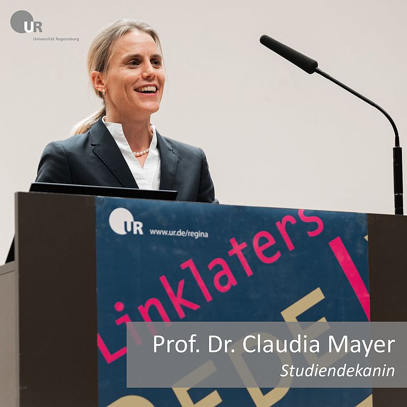 | Prof. Dr. Claudia Mayer, LL.M. (Chicago) Studiendekanin lehrstuhl.mayer@ur.de |