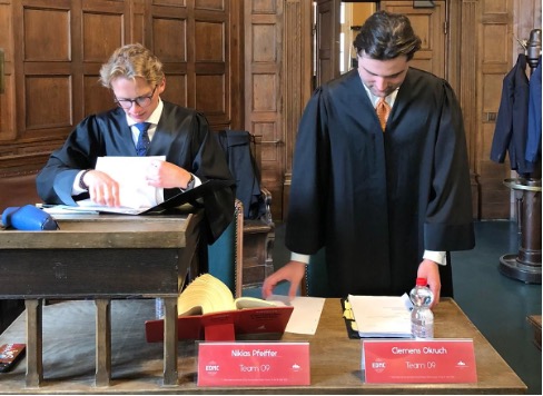 Clemens Okruch und Niklas Pfeiffer haben den Lokalentscheid der Universität Regensburg des XXXII. ELSA Deutschland Moot Courts gewonnen. Beim Nationalentscheid am Hanseatischen Oberlandesgericht in Hamburg haben die beiden das Halbfinale erreicht und wurden für die beste Klageerwiderung ausgezeichnet.