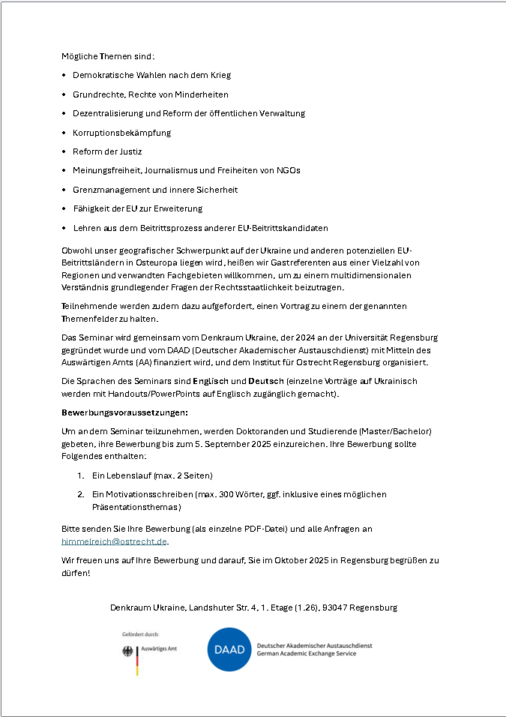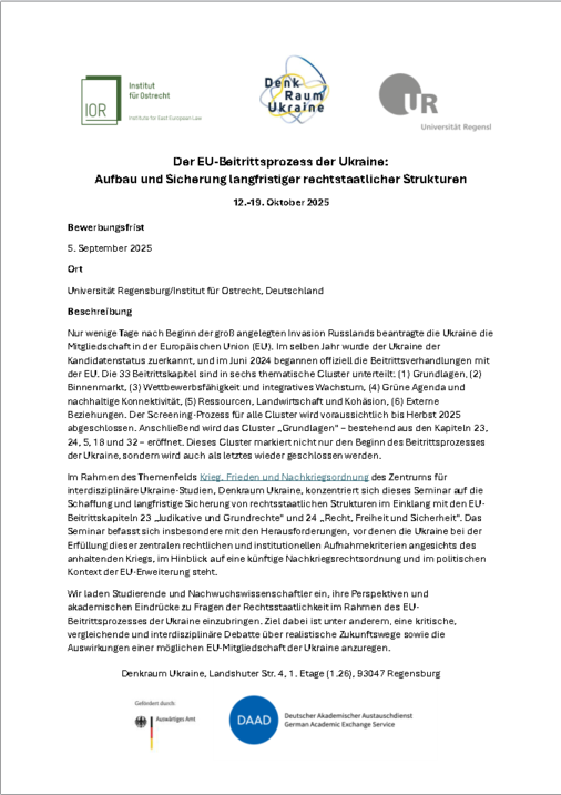 Institut für Ostrecht München, in Kooperation mit der Zweigstelle Regensburg der Deutschen Gesellschaft für Osteuropakunde e.V. (DGO).