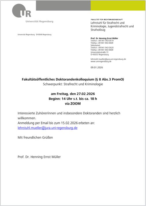 Die Unterlagen sind unter der Mailadresse des Lehrstuhls einzureichen: lehrstuhl.mueller@jura.uni-regensburg.de
